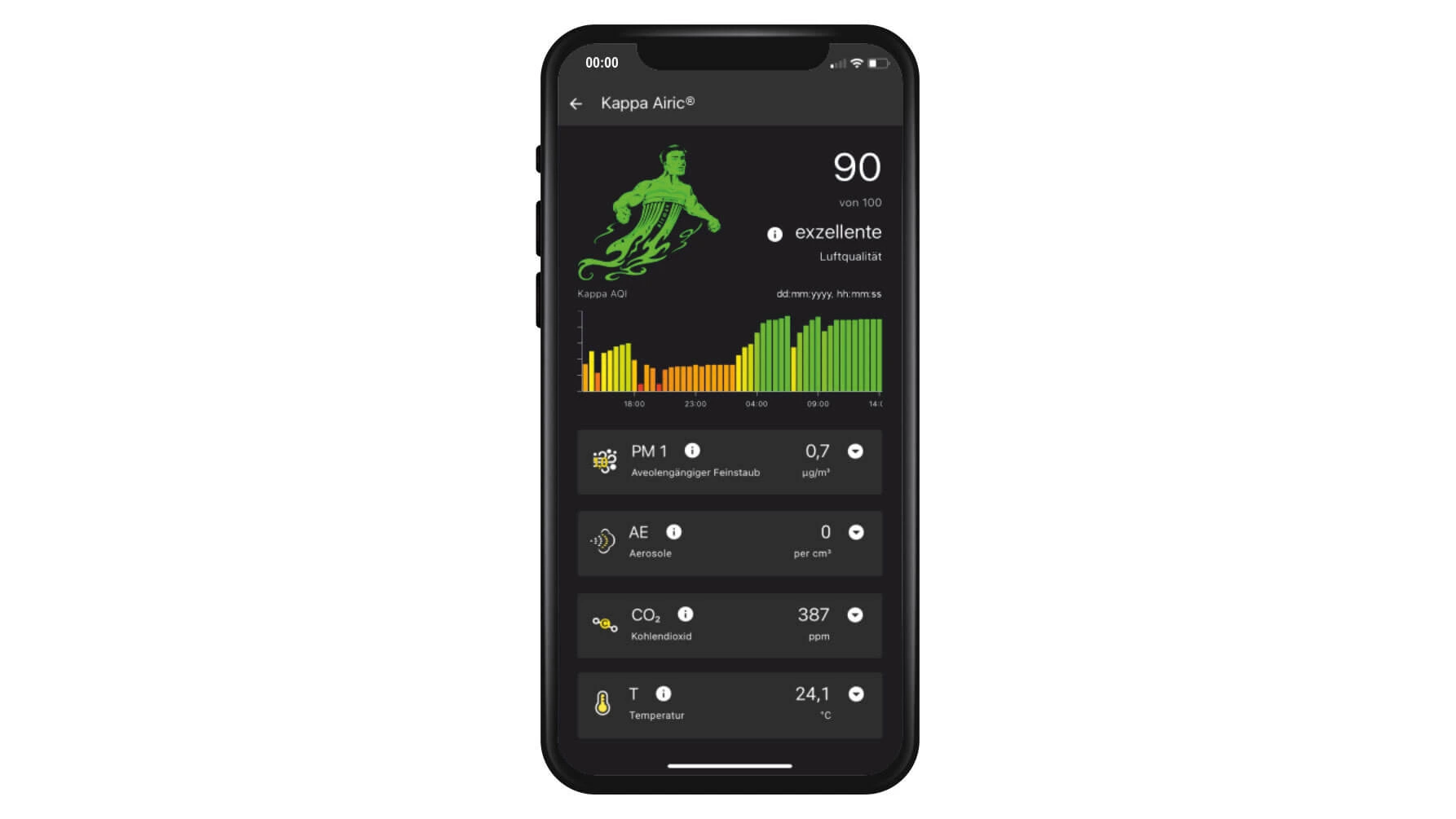 Hochsensible Sensoren in Industrieausführung messen dabei permanent die Qualitätsindikatoren der Raum- und Hallenluft. Die ermittelten Messwerte werden verschlüsselt an eine Softwareplattform – Kappa Scopic® – übertragen. Dort werden sie bewertet, verdichtet und zum Kappa AQI (Air Quality Index) verdichtet. Er veranschaulicht die aktuelle Luftqualität in einem Wert. Die Ergebnisse werden geräteunabhängig und in Echtzeit zur Verfügung gestellt. So können qualitative Aussagen über die Luftqualität getroffen und Handlungsfelder abgeleitet werden.