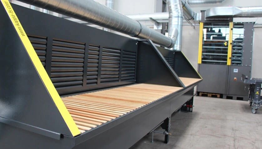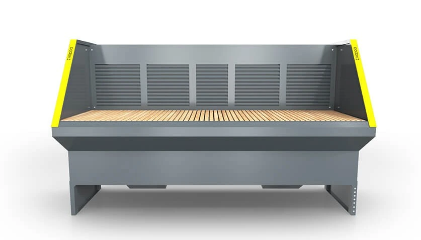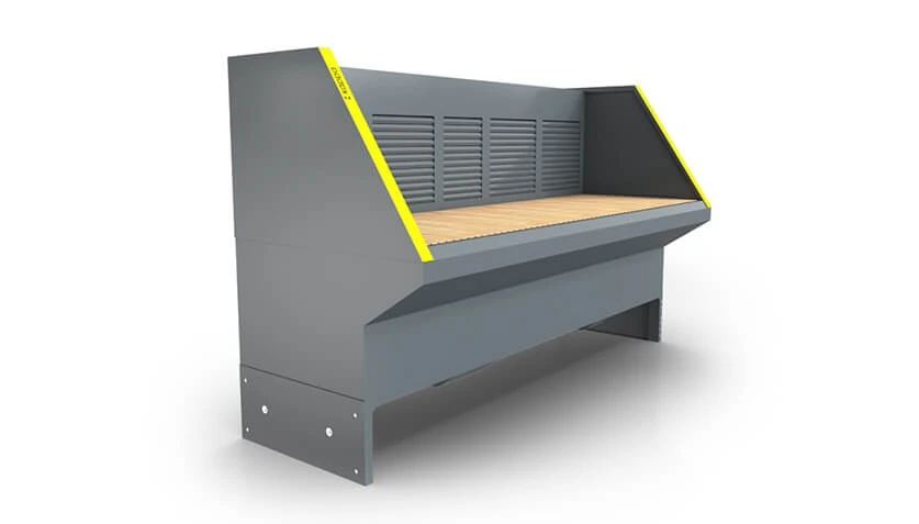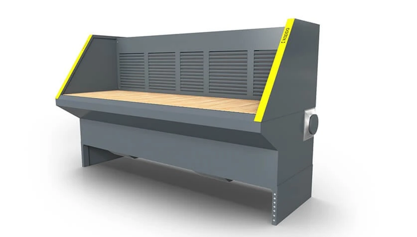 Die Emissionen werden in einer großen, integrierten Staubschublade gesammelt. Die Absaugtische eignen sich für die Bearbeitung unterschiedlichster Materialien und für unterschiedliche Anwendungen - Schleifen, Schweißen oder Kleben. Die Arbeitsbreite kann individuell gewählt, die Arbeitshöhe angepasst und die Seitenwände geschwenkt werden.
